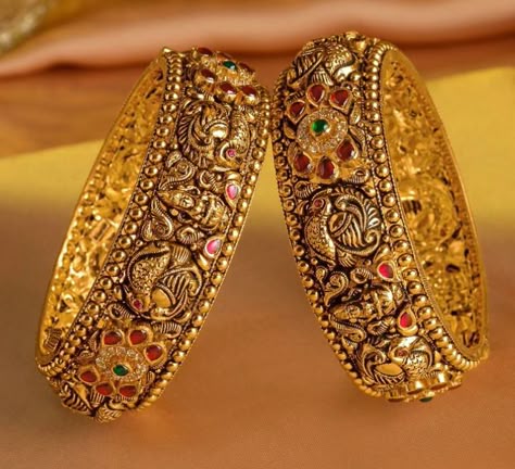 Add a touch of religious and spiritual significance to your look with the Fida Golden Toned Bangle Pair. These beautifully intricate bangles are heritage-inspired and gold-plated, handcrafted by artisans for a unique and meaningful addition to any outfit. Elevate your style with these artisanal bangles.
